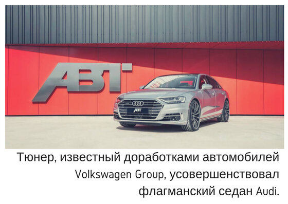 Audi A8 Diesel получила ряд усовершенствований от немецкой компании ABT Sportsline, которая получила известность своими тюнинговыми доработками автомобилей концерна Volkswagen. Теперь же предметом доработок стала Audi A8 с трехлитровым турбированным мотором и мощностью в 286 лошадей. На данный момент авто получила лишь ряд технических усовершенствований (за исключением дисков), но как знать? Возможно, совсем скоро ABT Sportsline пересмотрит свое отношение и решит улучшить и дизайн модели.