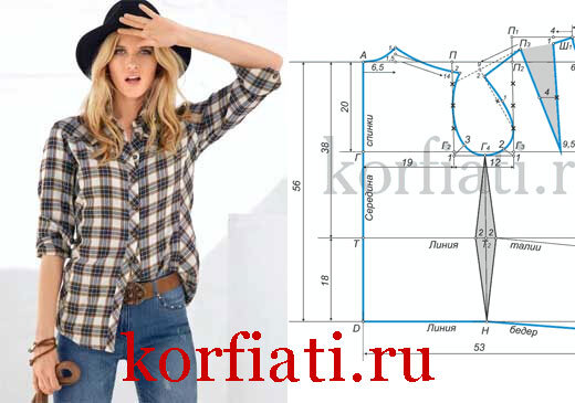 Эту стильную блузку в ковбойском стиле, как и многие другие, вы сможете сшить самостоятельно. Достаточно построить выкройку основу женской блузки. ВАЖНО! Здесь дана выкройка женской блузки (основа) прямой, свободной без вытачек по талии. Если хотите сшить приталенную, постройте выкройку приталенной. Описание построения выкройки блузки