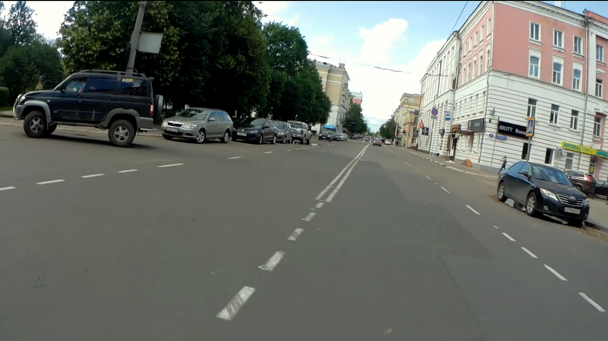 В Твери УАЗ Патриот на перекрёстке решил повернуть налево. Следом за ним ехал велосипедист. Перед самым въездом на примыкающую улицу УАЗ остановился, заперев перекрёсток, а когда велосипед поравнялся с ним, дал задний ход. Это зафиксировала камера. Смотрите.
