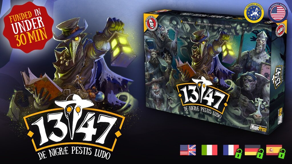 В данной рубрике мы рассказываем про настольные игры, на которые в данный момент идёт сбор средств, но который в скором времени завершится (до завершения не менее 3-х дней и не более 9 дней). И немаловажно, они уже профинансированы. Во второй части мы рассмотрим 3 игры: Air Flix, 1347 и Vast: The Mysterious Manor Air Flix Необычная игра про самолёты, где передвижение происходит с помощью "щелчка" по увестистым моделям на подставках. В данной кампании все цели на вырост, со слов авторов, являются эксклюзивами, так что имеет смысл вложиться, если игра Вас заинтересовала. До конца кампании осталось 4 дня. 1347 Настольная игра про чуму, в которой Вам придётся примерить на себя роль чумного доктора. В основе игры лежит программирование действий. Симпатичная и интересная настольная игра. Заинтересовала? Вкладывайтесь! В ней хватает ради чего стоит сделать вклад. До конца кампании осталось 4 дня. Vast: The Mysterious Manor Продолжение одной из наиболее любимых и обласканных игроками настоль