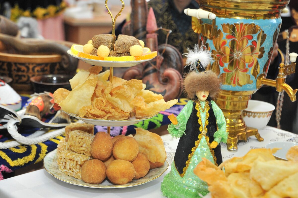 1. Эчпочмак Символ и гордость татарской кухни. Они продаются на каждом шагу, поэтому не старайтесь сбежать от этих дрожжевых треугольных пирожков. Уделите им особое внимание и отведайте эти эчпочмак не на бегу, а с чувством, с толком, с расстановкой. Как говорится, кто эчпочмак не едал, тот в Казани не бывал. 2. Татарский чай Это особая смесь черного и зеленого чая с шалфеем, чабрецом, ромашкой и мятой. Татарский чай пьют с молоком. Помимо оздоравливающего эффекта, чай обладает тонкими и нежным ароматом. 3. Чак-чак Ни в русской, ни в татарской культуре не принято пить чай «в одиночку». К нему полагается целая палитра десертов! Медовый чак-чак по старинным рецептам да с татрским чаем - поверьте, в столице такого не найти. Кстати, чак-чаку в Казани посвящен целый музей. 4. Музей Счастливого детства А теперь о пище духовной. В этом музее можно окунуться в детство и предаться светлым воспоминаниям. Тут собрано все, что приводило в восторг советских детей. Все можно трогать и фотографиров