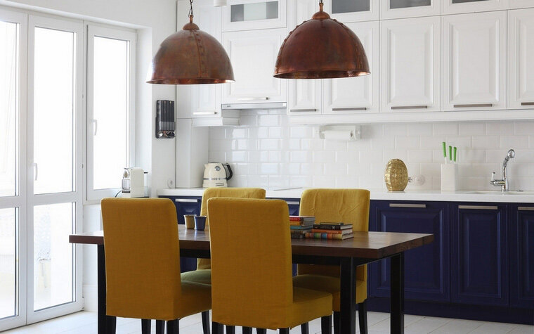 Чтобы оформить кухню в английском стиле потребуется классическая мебель из темного дерева, обивки и шторы в клетку или цветочек, а также много светильников с абажурами. Варианты оформления кухонь в английском стиле представлены в нашей фото подборке. Автор проекта: Антон Корнеев Черно-белая кухня классических форм стала отличным фоном для стульев и пары подвесных ламп модного горчичного цвета. Автор проекта: Евгения Млынчик Кухонная мебель из темного дерева с филенчатыми фасадами создает впечатление настенных деревянных панелей, особо ценимых в викторианском стиле. Автор проекта: Татьяна Аленина Кухня оформлена в современном стиле с элементами классики и в модном сочетании лилового и серо-бежевого цветов. Большие поверхности открытой кухни отделаны деревом под орех. Именно деревянные отделки создают ассоциации с английским стилем. Автор проекта: Архитектурное бюро ПЛАН Классические кухонные шкафы из красного дерева, мраморные столешницы, медальонные стулья с узорными обивками родн