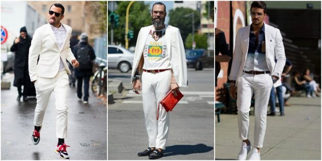 1. Весь в белом Просто белый свитер — скучно и чопорно. Но добавьте к нему белые брюки и белые туфли — и вот вы уже интересный и яркий — не побоимся этого слова — пижон. Если такой образ кажется вам уж чересчур свежим решением, можно разбавить его яркой обувью, шляпой, очками, другими аксессуарами, футболкой с принтом или же набросить сверху куртку или блейзер сдержанных цветов: серого, бежевого, светлого индиго или милитари. 2. Вертикальная полоска Выигрышно смотрится везде: хоть на штанах, хоть на пиджаке, хоть на рубашке. Да даже в формате тотал-лук! При этом ни к цвету, ни к ширине полос строгих требований не предъявляется. Бонус: вертикальные полосы зрительно вытягивают силуэт, добавляя роста и стройности. 3. Немного розового и пастели Традиционно девичьи цвета потихоньку оккупируют мужскую моду. Провокационные ярко- и светло-розовые, пастельные цвета замечены как на модных показах, так и в уличных луках. Любопытный эффект: розовый и пастель подчёркивают брутальность! 4. Деним и