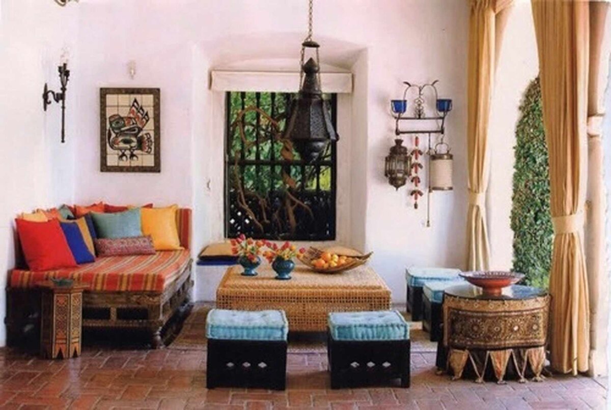 Этнический индийский стиль – это гармоничное сочетание богатства и утонченного вкуса со скромной простотой. Традиционные символы страны, позолота, многообразие красочных орнаментов и рисунков, роскошь декора, великолепие резьбы и инкрустации – все это характерные черты индийского стиля. Одна из древнейших в мире культура Индии формировалась веками, вбирая в себя лучшее из этнических традиций разных народов. Некоторые особенности своих чудесных орнаментов и декоративные элементы греческого стиля индийцы позаимствовали у персов. Индия – страна строгих религиозных понятий и духовных практик, которые составляют основу жизни и быта индийцев. Поэтому в оформлении интерьера обязательно присутствуют специальные аксессуары: картины со сценами из жизни Будды и скульптуры религиозного характера. Дополняют интерьер ширмы с женскими фигурами, глиняные птички и зверушки, разноцветные свечи самых разнообразных форм, мелодично звенящие безделушки в дверных и оконных проемах, модный нестареющий кал