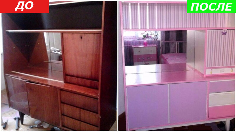 Мы с вами уже глазели немного на картинки отреставрированной советской мебели. И вам понравилось, как я помню. Да и я нарыла еще красотищи невероятной. Потому продолжим. Что тут у нас? Домик Барби. Я прямо ждала, что сейчас в гости заглянет Кен и упадет в обморок от такого великолепия. И это, вероятно, комната девочки. Бедный ребенок. Ее с детства готовят к тому, что в жизни слишком много уродливых штук. А ниже у нас что? Видимо, это гостиная в домике Барби! Сложно сказать, чем декорированы стены этого многострадального шкафа, но это явно не то, о чем он мечтал все 50 лет, которые служит этой семье. Кстати, помните популярный стол-книжку? Ребят, ну серьезно, это перебор. Понимаю, что где-то тут была заявка на эксклюзивный дизайн... Но не получилось. А ниже увидите то, о чем мечтаешь, если в Париж так и не получается полететь... Об Эйфелевой башне прямо у себя в комнате! Божечки, я даже боюсь представить, что у этих людей в голове. Эйфелевая башня, наклейки с чашкой и тортиками, ангело