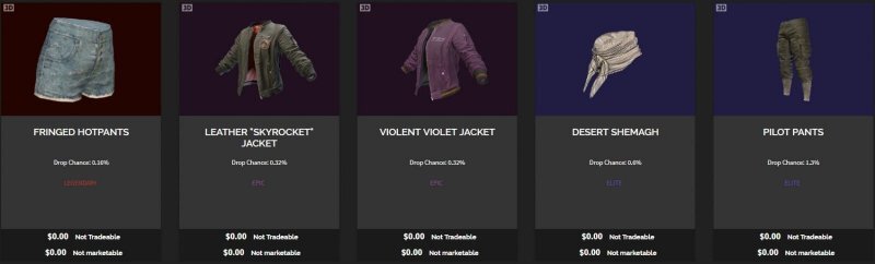 Итак, новый кейс получил название «Aviator Crate». Чтобы его открыть, потребуется одноименный ключ. Он содержит в себе 15 предметов, среди которых нет ни одного скина на оружие. Самая ценная вещь (короткие джинсовые шорты) имеет шанс выпадения всего 0.16%.