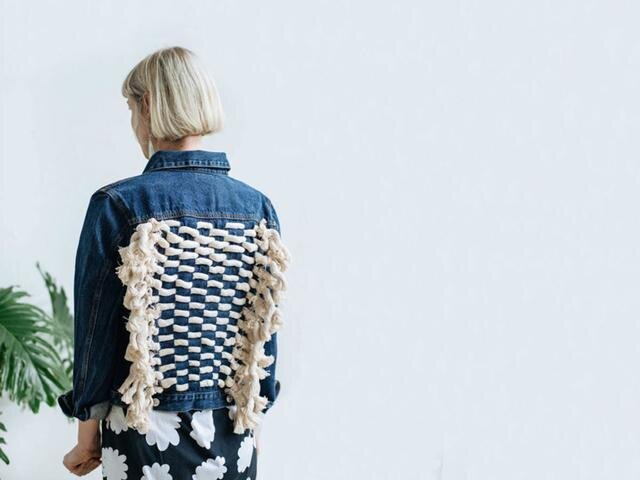 Джинсовые куртки настолько модны в этом сезоне, что все носят их под обычными пуховиками, парками или даже шубами. Так почему бы не сделать из старой джинсовки новую, авангардную? Предлагаемый нами мастер-класс по изготовлению джинсовки сочетает в себе две тенденции в стиле - украшенные джинсовые изделия и объемное ткачество. В такой классной вещи все будут на вас оборачиваться, гарантируем! Такую джинсовку (можно использовать и джинсовую рубашку) в состоянии сделать любой, уровень сложности тут даже неизвестно как присвоить. Вам понадобится всего лишь 1 час времени и: 1. Джинсовая куртка (рубашка); 2. Мат для рукоделия; 3. 10 метров толстой красивой веревки (диаметр 22 мм) любого цвета. Выбирайте контрастные расцветки; 4. 5 метров тонкой веревки (диаметр 10 мм); 5. Дисковый нож; 6. Портновские ножницы; 7. Портновский мелок; 8. Небольшие ножницы; 9. Линейка. Шаг 1. Подготовьте куртку Для начала постирайте джинсовку. Затем положите ее на плоский удобный стол спиной вверх и подложите под