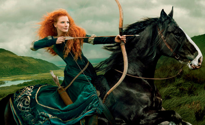 Женщина-фотограф Энни Лейбовиц задумалась над тем, как бы выглядели принцессы в кино, если бы их играли актрисы. Поэтому автор создала серию фотографий с девушками, которые "Сыграли" роли всем известных героинь: