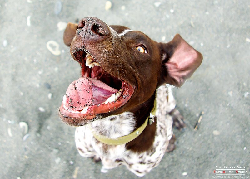 Персея, тощего курцхаара, мы подобрали в Адлере, пригороде Сочи, где на тот момент с мужем работали на киносъемочной площадке, были командировочными и жили в гостинице. История знакомства с Персеем началась со встречи на улице. На том все могло бы закончиться, если бы наш оголодавший герой не явился к обеду съемочной группы. Явился и стал отчаянно у всех выпрашивать жрачку. Мой благоверный не устоял под напором голодных глаз и поделился с новым другом сосисками. Те сосиски зажгли искру, в собаку мы влюбились бесповоротно, и после обеда у нас с Персеем уже были фотографии. Первые семейные фото с МОИМ псыночкой :) У новоиспеченного члена нашей семейки естественно не было никакой амуниции, он был очередной неприкаянной выкинутой собакой, каких в Сочи или в Абхазии стада ходят сплошь да рядом. Потому первым делом мы отправили мальчика-ассистента, местного жителя, в ближайший зоомагазин за ошейником с поводком Наш обед закончился, начались съемки. К слову сказать, съемки - это абсолютно в
