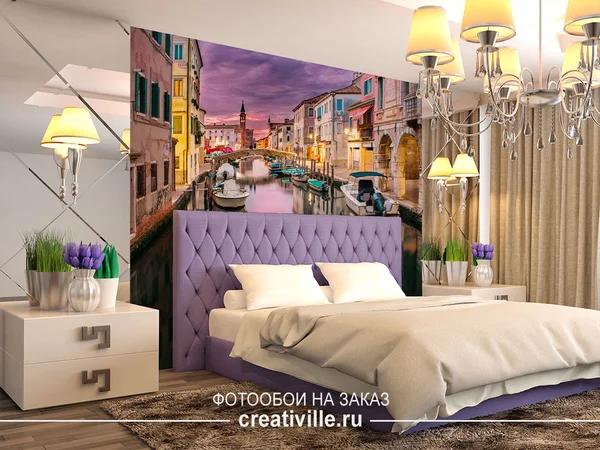 Современному помещению спальни так же не чужды виды Венеции.