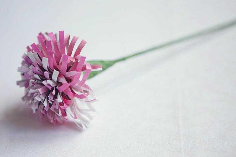 Если у вас завалялись старые журналы, не спешите выбрасывать их. Из них могут получиться чудесные пушистые пионы, которые, собранные в один объёмный букет или по одиночке, украсят собой любое торжество и станут просто замечательным декором для дома! Усилий потребуется самый минимум, так же, как и набор материалов. Для «журнальных пионов» приготовьте: Начинаем творить! 1. Выберите яркие страницы из журнала, вырвите их. Сложите страницы пополам, затем каждую из получившихся сторон ещё раз пополам. 2. Тройными ножницами сделайте надрезы, но не до конца. Можно использовать и обычные, но тогда процесс займёт чуть больше времени. 3. Возьмите шпажку, приклейте к ней клейкую ленту и начинайте закручивать цветок. 4. По завершении закручивания возьмите ещё немного клейкой ленты и оберните ею ствол и основание цветка, чтобы хорошо его закрепить. Сверху приклейте цветную ленту. Готовый цветок выглядит очень нежно и просто очаровательно: Ставь 👍 Подписывайся https://zen.yandex.ru/samodelkino