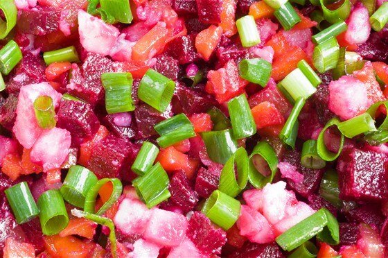 Можно отойти от традиции в кулинарии и приготовить какое-нибудь привычное блюдо более оригинально. Так, к примеру, можно приготовить очень сочный и вкусный традиционный винегрет с добавлением каких-либо фруктов и листового салата.