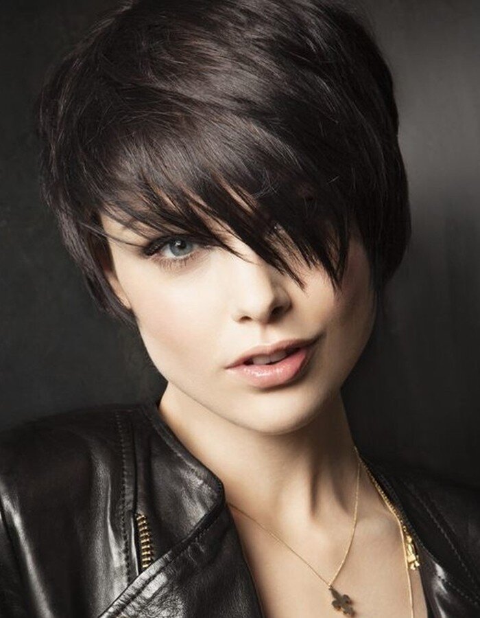 Самой креативной будет косая челка. Она способно эффектно смоделировать овал лица, если будет подобрана индивидуально. При помощи косой челки можно добиться очень плавного и элегантного силуэта прически.