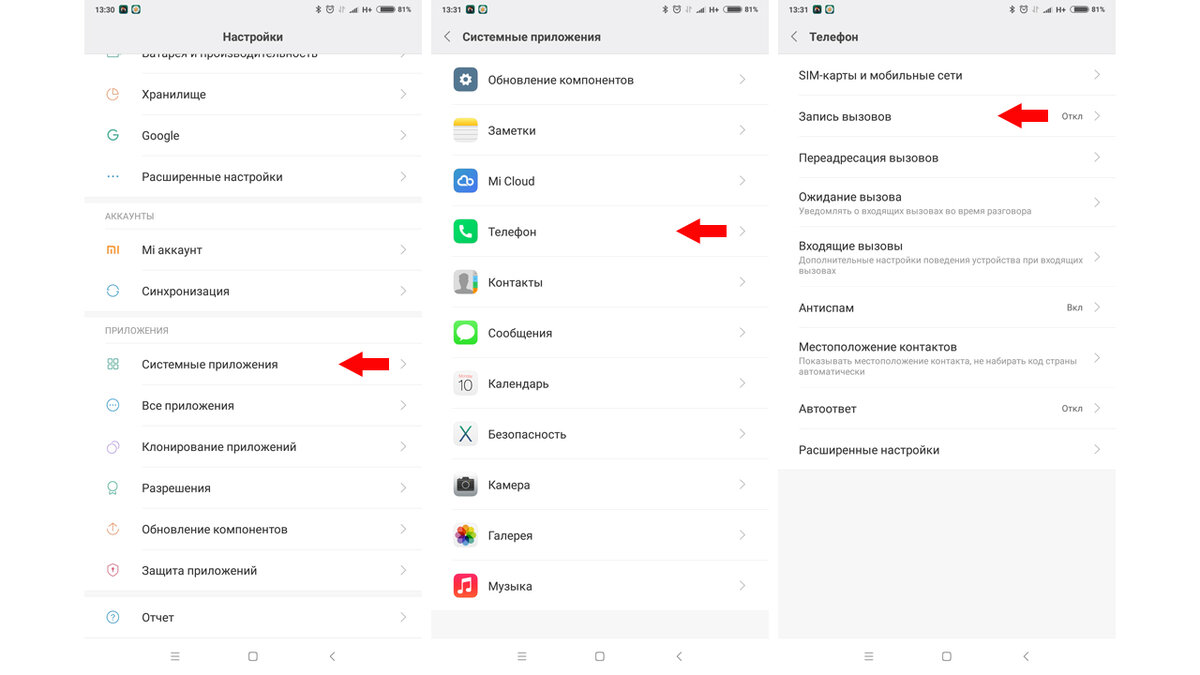 Прошивка MIUI обладает такой функцией как запись разговоров по телефону как в ручном, так и самостоятельном режиме. В этой статье я расскажу вам, как ее включить и настроить. Ручной режим Во время выполнения звонка, на экране телефона показывается разные функции, среди которых есть и возможность записи. Соответственно, чтобы начать сохранять текущий разговор, просто нужно нажать на кнопку «запись». Можно записывать не весь разговор и при необходимости остановить. Встроенные инструменты прошивки позволяют сделать этот процесс автоматическим. Это может потребоваться, если к примеру вы часто прибегаете к такой фишке. Автоматический способ Чтобы включить его нужно зайти в настройки. На картинках более подробно можно рассмотреть порядок действий. После того, как открылось окно настроек, активируем «записывать вызовы автоматически». После чего открываются дополнительные настройки открываются. Здесь предоставляется 2 версии: можно записывать разговоры со всеми абонентами или только определе
