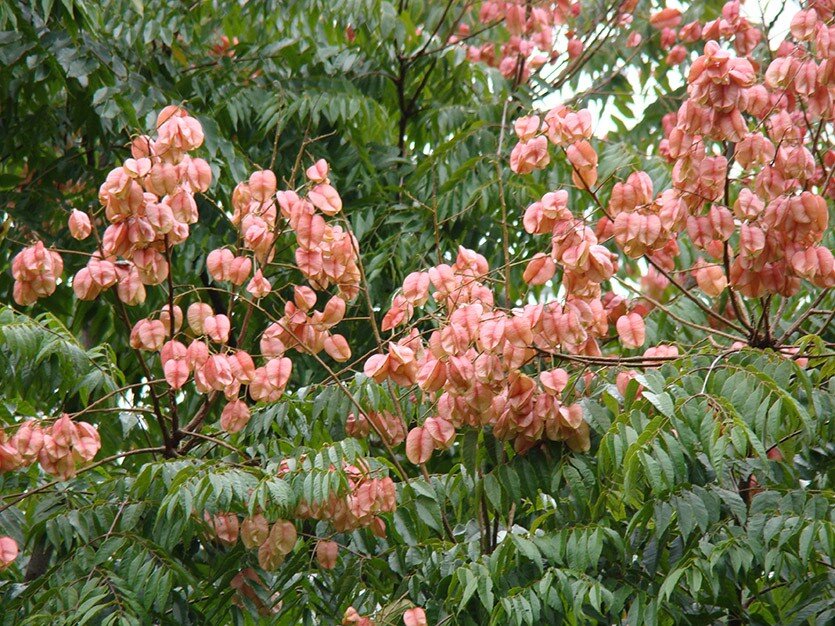 Полезные качества. В мае молодые побеги имеют красноватый оттенок, в начале лета густая перистая листва также декоративна, в конце лета дерево шикарно цветёт, а осенью плодовые коробочки (особенно розового цвета) придают растению ещё более привлекательный вид. Цвет коробочек становится розовым в тёплую солнечную осень, если дерево растёт на плодородных слабокислых почвах. В остальных случаях «плодовая гирлянда» из жёлтого цвета, высыхая, переходят в светло-коричневый. Стоит сказать, что ожидаемый эффект от декоративности кроны и цветения приходит с годами – чем старше и крупней становится кёльрейтерия, тем более обильней цветение и равномерней отрастает крона. При этом семенные саженцы живут до 150 лет.
