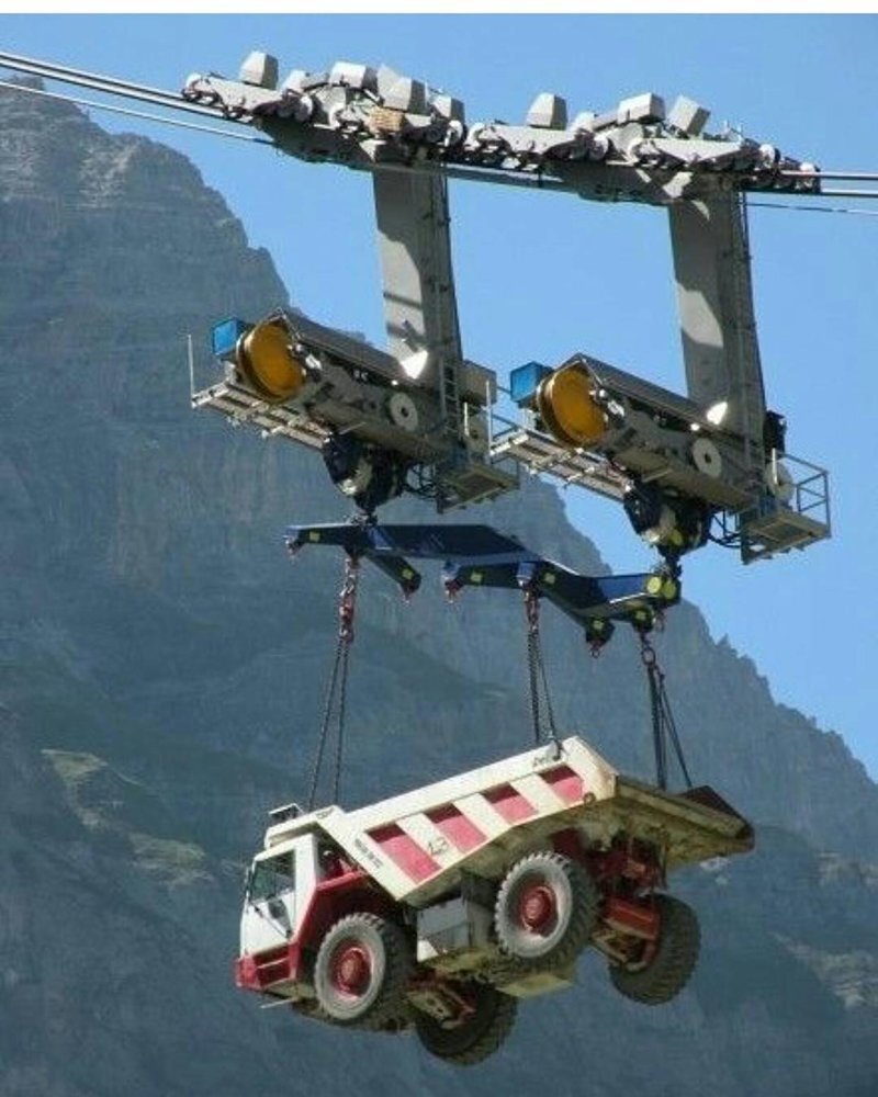 Некоторые машины поражают своими гигантскими размерами. Удивительно, как люди смогли разработать и построить нечто подобное. Мы подобрали для вас фотографии и видео самых удивительных и гигантских машин. Поехали! Канатная дорога в Альпах была специально создана для транспортировки тяжелой техники. Выглядит это все довольно впечатляюще. Водителей, конечно, внутри нет! Некоторые мобильные краны поражают своими исполинскими размерами. 9 осей - это еще не предел. Такие краны используют для строительства крупных объектов: стадионов, мостов, заводов. Liebherr LR 13000 - самый мощный самоходный кран в мире. Он может поднять до 3 тысяч тонн при высоте подъема до 12 метров. Высота основной стрелы - 144 метра, но это она может быть увеличена до 250 метров дополнительной секцией. Liebherr, Caterpillar и многие другие компании делают гигантские экскаваторы и бульдозеры для карьеров. Один из них - 4250-WS, известный также как BIG MUSKIE. Еще один огромный экскаватор для открытой карьерной добычи.