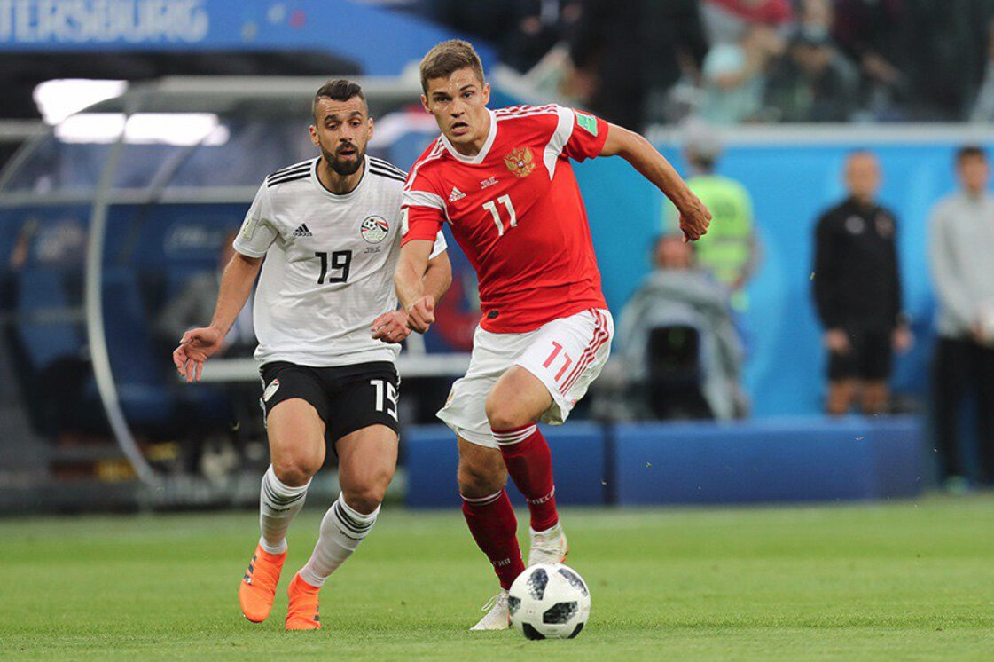 Сборная России победила команду Египта во втором туре группового этапа чемпионата мира по футболу и гарантировала себе выход в 1/8 финала. В первом тайме обошлось без голов. В начале второго тайма Роман Зобнин бил по воротам, но неточно. Мяч попал в Ахмеда Фатхи, который срезал его в собственные ворота. Второй мяч россияне забили на 59 минуте, автором гола стал Денис Черышев. Третий раз Россия поразила ворота сборной Египта на 61 минуте, забил Артем Дзюба. Единственный гол сборной Египта с пенальти забил Мохаммед Салах на 72 минуте. Ранее сборная Мексики обыграла сборную Германии со счетом 1:0. Фото: Сборная России / Твиттер