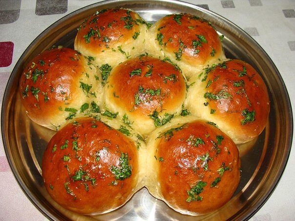 Ингредиенты для пампушек: -250 мл. молока, -500 гр. муки, -1 яйцо, -2 ст.л. растительного масла, -1/2 ч.л. соли, -1 ст.л. сахара, -11 гр. сухих дрожжей, -1 яйцо для смазывания. Ингредиенты для соуса: -2 ст.л. растительного масла, -2 ст.л. воды, -4 зубчика чеснока, -соль по вкусу. Данное количество продуктов рассчитано на 14-15 пампушек. Молоко подогреть до теплого состояния. Добавить дрожжи, яйцо, сахар, соль и растительное масло, все перемешать. Добавить муку и замесить тесто. Накрыть полотенцем и поставить в теплое место приблизительно на 1 час - можно поставить в емкость большего размера с горячей водой. Тесто должно увеличиться вдвое. Противень застелить пергаментной бумагой и смазать растительным маслом. От теста отщипнуть небольшие кусочки, на поверхности, слегка присыпанной мукой, скатать шарики и выложить на противень на расстоянии 5 сантиметров друг от друга. Пампушки смазать взбитым яйцом, выпекать при температуре 200 градусов в течение 25-30 минут.
