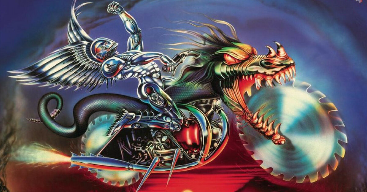 Выпущенный в 1990-м году, Painkiller стал последним альбомом Priest с участием вокалиста Роба Хэлфорда (Rob Halford). На обложке изображён робот-байкер, молотящий кулаком по воздуху, проезжая по обломкам горящего города на жутковатом механическом коне, у которого вместо копыт — колёса в виде огромных круглых лезвий с зазубренными краями. «Группа изначально настаивала на некоем ангельско-адском образе на мотоцикле, но при этом должно было присутствовать какое-нибудь металлическое существо. Помню, они хотели, чтобы это существо неслось на заднем сиденье: была ещё мысль сделать его частью мотоцикла, — рассказывает Марк Уилкинсон (Mark Wilkinson), художник, отвечавший за оформление конверта пластинки, — В конце концов мне пришла в голову мысль сделать живое существо из самого мотоцикла». «Это, знаете ли, типичный образ из фантастического мира Judas Priest: вы не знаете, откуда он взялся — из рая или из ада, но уж точно вы не хотели бы встретиться с ним тёмной ночью, и вряд ли у вас появило