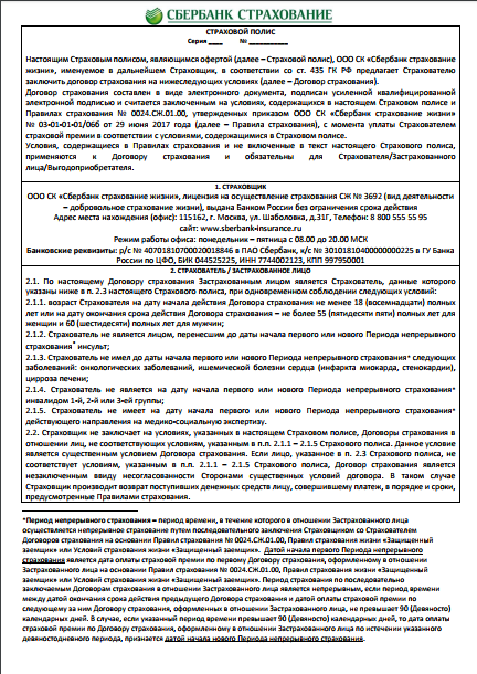 Являетесь ли Вы Застрахованным лицом в ООО СК «Сбербанк страхование жизни»: