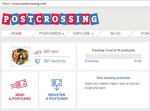Всем большой привет! Сегодня я хочу рассказать вам о том, как заполнять почтовые открытки. Эта статья будет особенно полезна новичкам, которые только начинают отправлять свои первые открытки. На сайте Посткроссинга postcrossing.com я зарегистрирована уже почти 6 лет (исполнится в начале августа). Мною отправлено 397 открыток, а получено 391 (было бы намного больше, но по определенным причинам я делала перерывы). Хотя на самом деле моя коллекция открыток насчитывает уже более 2000 штук. Как вы видите на фотографии, сейчас я также "в отпуске" на официальном сайте (0 travelling), потому что провожу прямые обмены. Итак, в какой последовательности стандартно заполнять открытку? Как это делаю я? Сначала я клею марки. На одной открытке может расположиться не одна, а 2 или 3 марки, а то и 4. Поэтому для начала я нахожу место для них. Некоторые клеят марки после полного заполнения открытки, чтобы, если вдруг допустил ошибку, не было жалко было потратить марки. Далее я пишу адрес получателя в т