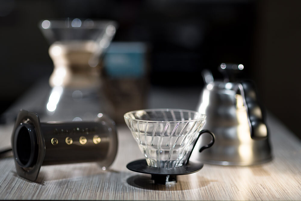 Знаете ли вы, что эспрессо не является самым крепким кофейным напитком и по содержанию кофеина проигрывает практически всем альтернативным способам заваривания? Процесс его приготовления довольно агрессивен: за небольшой промежуток времени зерно подвергается воздействию горячей воды под высоким давлением, выдавливаются все вкусовые вещества и масла. Характер получаемого таким образом напитка сложно соотнести с тем, что кофе в первую очередь - это ягода. Альтернативными считаются все способы приготовления кофе без использования эспрессо-машины. Они позволяют раскрыть в зерне его ягодную составляющую, подчеркнуть кислотность и нивелировать горечь. Рассмотрим подробнее самые популярные из них: Chemex Кемекс был придуман в 1941 году Американским химиком Питером Шлюмбом. Он изменил пропорции стеклянной колбы Эрленмейера таким образом, чтобы в ее верхнюю часть можно было установить бумажный фильтр. Для удобства использования добавил деревянный ободок и подчеркнул общий стиль кожаной лент