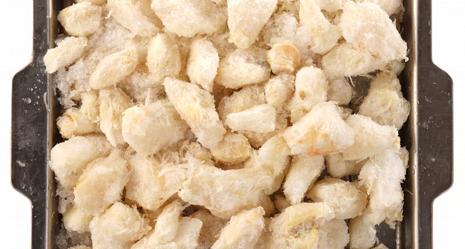 Замороженные фаланги нужно разморозить в холодильнике, оставив их там на ночь. Затем секатором надо вскрыть с двух сторон фаланги, вытащить мясо, а из мяса — белую косточку, и можно работать.