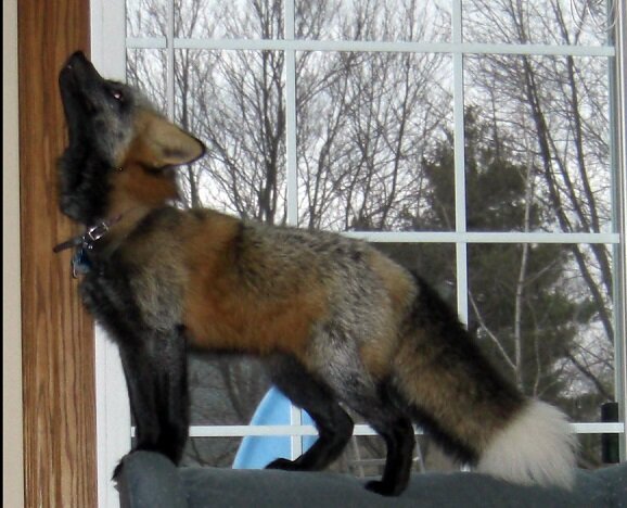 Здесь остается только добавить, что в манере поведения домашней лисы проглядываются черты одновременно и кошки, и собаки. «Кошачье» поведение выражается в умении очень похоже мяукать, запрыгивать на довольно высокие предметы мебели, носиться по дому выпучив глаза и непреодолимое желание наскакивать на ноги хозяина из-за угла. «Собачье» поведение выражается в умении чинно ходить на прогулку на поводке и с удовольствием потреблять собачью же пищу.