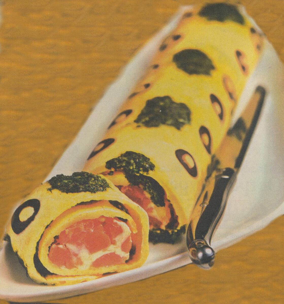 Ингредиенты: 250 гр. слабосолёной форели, 4 яйца, 70 гр. сливочного масла, 100 гр. майонеза, 1 лимон, 1 баночка маслин или оливок без косточек, 1 пучок укропа, 1 пучок петрушки, 2 столовые ложки муки, 2 столовые ложки крахмала, соль, молотый чёрный перец, растительное или оливковое масло Способ приготовления: В чаше смешать яйца и муку, хорошо взбить, добавить крахмал, майонез и молотый чёрный перец по вкусу, всё перемешать. Пучки укропа и петрушки вымыть, обсушить и мелко нарезать. Можно использовать блендер. Выложить в отдельную посуду измельчённую зелень. К ней добавить из чаши 2 столовые ложки подготовленной омлетной смеси, тщательно перемешать. Подготовить противень, застелить его пергаментом и очень сильно смазать его растительным или оливковым маслом. На пергамент выложить омлетную массу из чаши без зелени и выровнять всю поверхность. Омлетную массу с добавлением укропа и петрушки разложить на омлетной массе, добавленной из чаши по одной чайной ложке, то есть кучками. Маслины и