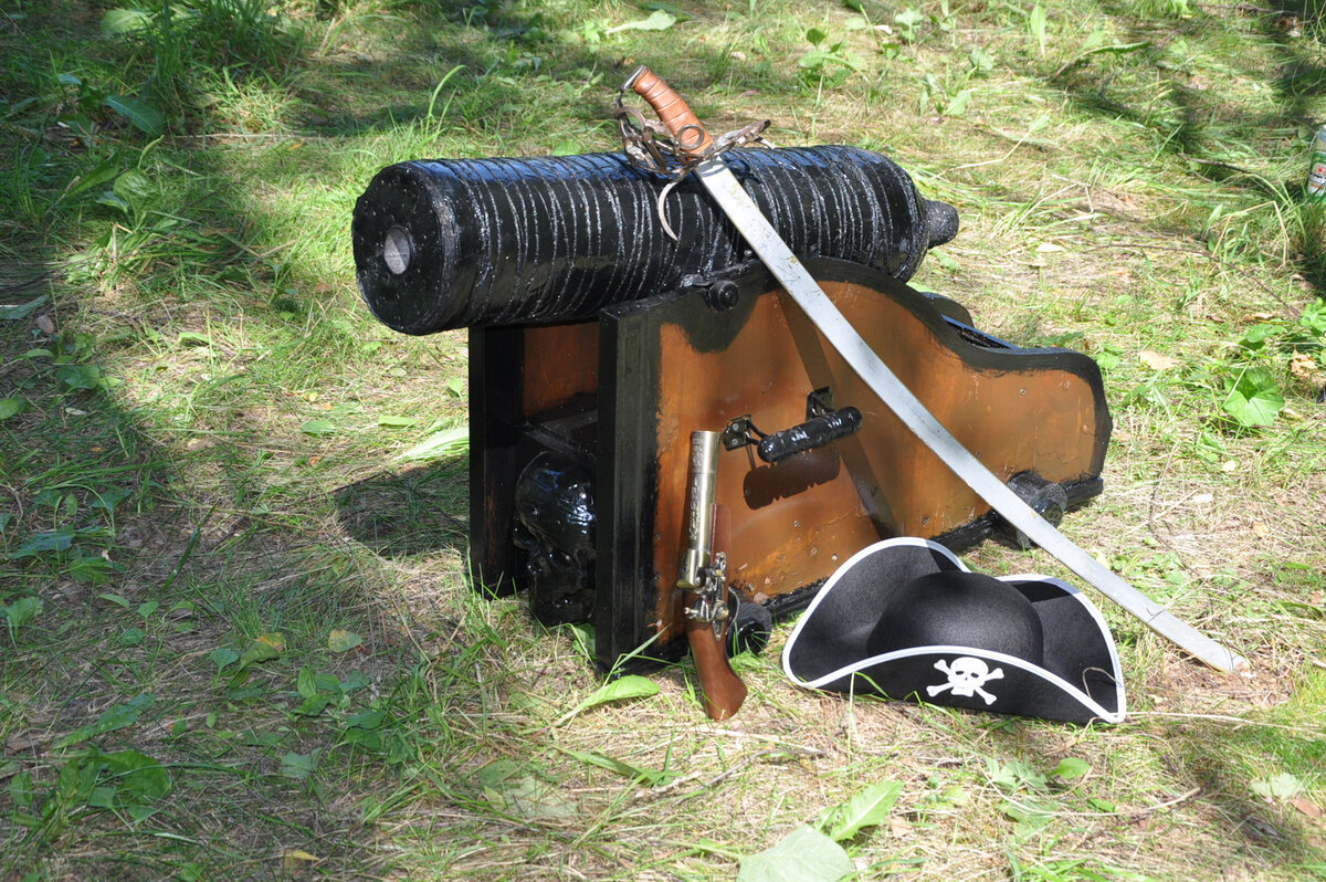 Для основы ствола взял старый кусок трубы диаметром с теннисный мяч.Расплющил одну из сторон кувалдой. Нашел несколько пустых 5-6 литровых баклашек из-под воды. Срезав верха и низа соединил их в продолговатую конструкцию завершив её последней секцией от 6 литровой баклашкой с целым горлышком. Внутрь получившегося цилиндра поместил кусок трубы и как следует запенил всё это дело монтажкой…На следующий день ствол протестировали. В качестве запала использовали петарды Корсар Видео 1 тест стволаrutube.ru/video/3c7011078bbc4f4c3b0fae56dd416ae8/В качестве лафета под ствол пушки были выбраны 2 спинки от старой кровати.Которые я закрепил на прямоугольной коробки из под хлама. Затем сделал на дуле поперечный штифт и сделал под него пропилы на верхней части стенок лафета. Заделал торец вокруг ствола куском рубероида, а так же завернул и сам ствол, замотав всё это дел веревкой Видео 2 тестrutube.ru/video/aa47e34464ee9b85391adf35ce95dc72/Покрасил в черный и коричневый цвет. Поверх пропилов