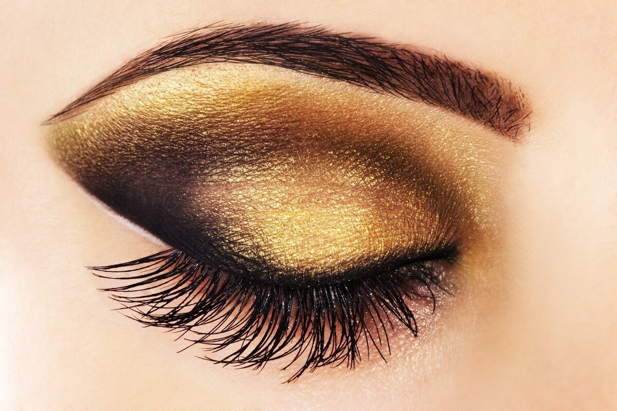 Глаза приобретают выразительность, благодаря золотым краскам выглядят празднично. Макияж отлично сочетается с любым нарядом. Поэтому созданный образ будет безупречным.
