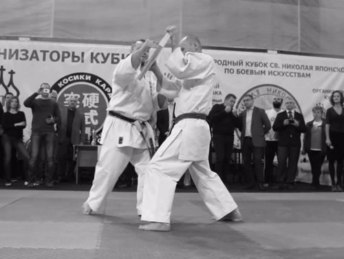 Евгений Рыбин: Понимаете, в тамешивари есть элемент подготовки материала. Во время демонстрации тамешивари - это элемент шоу, и для зрителей непонятны многие тонкости, поэтому на показательных выступлениях часто все выглядит иначе, чем в додзе, когда ты занимаешься для себя. Часто зритель воспринимает не удавшуюся попытку тамешивари на демонстрации как неподготовленность каратиста, хотя на самом деле часто бывает совсем не так. Пример: я беру брусок для тамешивари 4х5 см для разбивания на публике предплечьем котэ учи, но иногда этот брусок из хвойной породы дерева, которая по виду напоминает мне лиственницу. Я пытаюсь разбить, но брусок только трещит, но не ломается, партнер не может удержать его на весу в руках. Для зрителя это неудавшаяся попытка тамешивари бруска 4х5, для меня неправильный выбор дерева, которое можно разбить только в станке, хотя это тот же брусок.