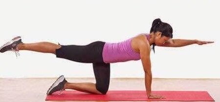 'Охотничья собака' Как выполнять: 1. Встать на четвереньки, выпрямить спину, ладони поставить напротив плеч, колени - напротив бедер. 2. Напрячь пресс, начать вытягивать одну руку, пока она не будет параллельна полу, после чего так же поднять 'противоположную'( для левой руки - правая нога, для правой - левая) ногу. 3. Вернуться в исходное положение и повторить для другой руки и ноги. Рекомендации: 1. Повторить не менее пяти раз, держаться во 2-ом положении по десять секунд(если возникают болевые ощущения, то менее десяти), перерывы между упражнениями не меньше пяти секунд. 2. Держать голову и спину в одном положении. Упражнение влияет на многие мышцы спины, так же тренирует корпус и ягодицы. 'Боковая планка' Как выполнять: 1. Лечь на бок, упор на предплечье, локоть образует прямой угол с полом, колени согнуты(если упражнение будет казаться слишком легким, то ноги можно выпрямить). 2. Поднять своё тело вверх при помощи бедер и держаться в таком положении 30-40 секунд. 3. Перевернуться
