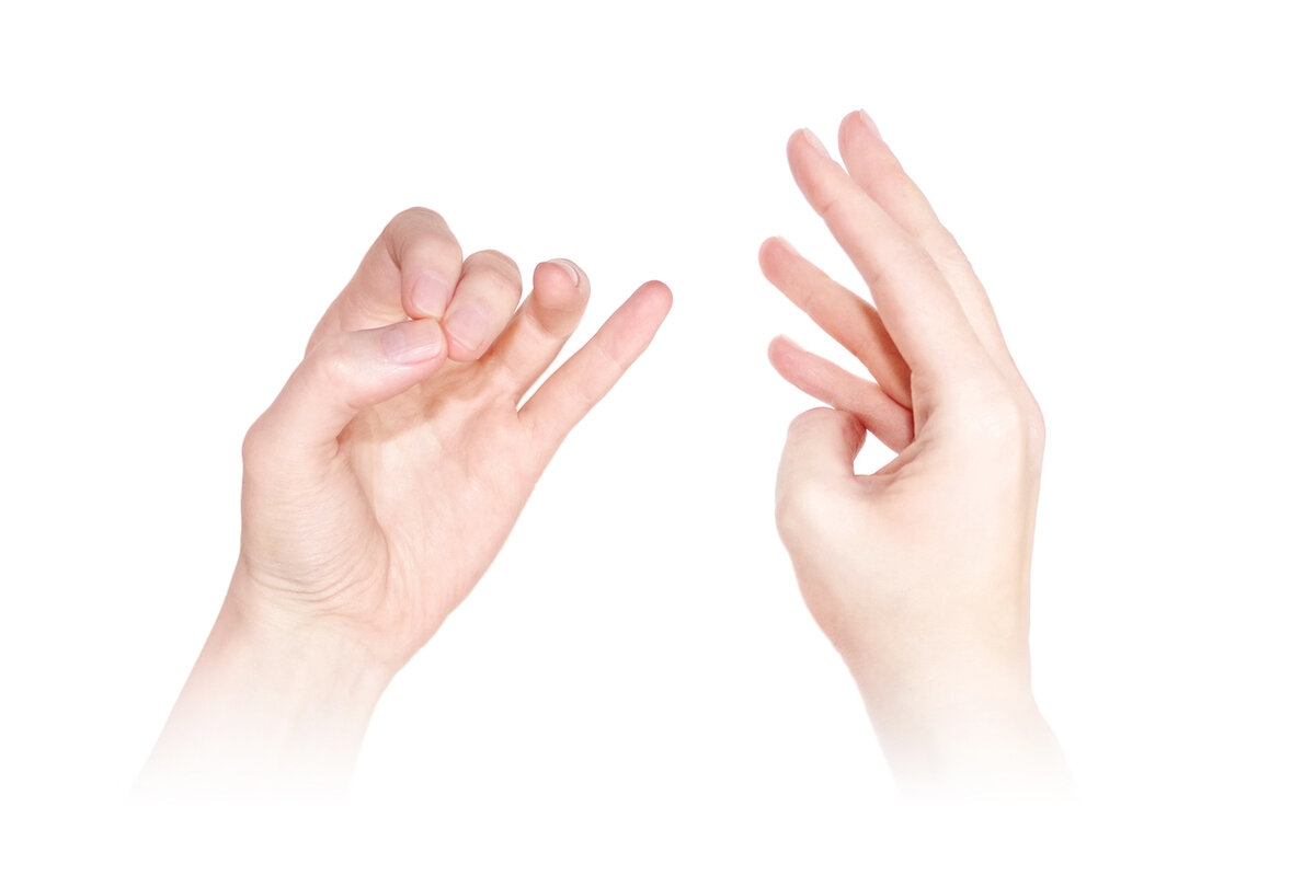 Левая: касаются кончиками средний, указательный и большой пальцы.