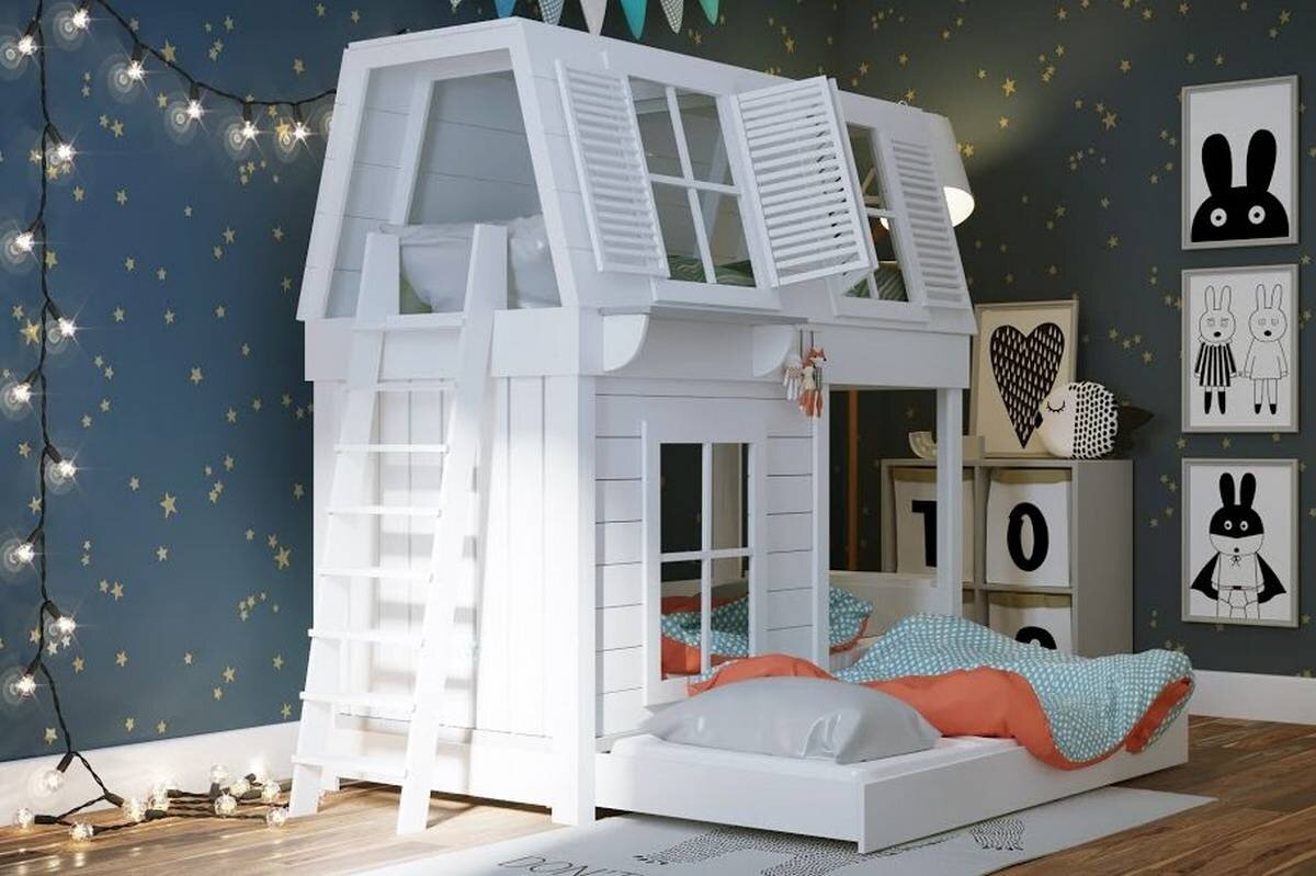 Позволить себе просторную квартиру может не каждый. А дети просто не могут жить в тесноте, поэтому иногда для экономии пространства приходится "городить чердаки". Мы покажем вам 10 идей кроватей которые не только спасут ваше пространство, но и сделают интерьер оригинальным. 1. Такая кровать будет радовать не только детей и взрослых тоже. Это же дом в доме! А на ночлег там можно разместить как минимум троих детей. 2. Кровать - рабочий уголок. Данная модель вобрала в себя три качества: во-первых, это два полноценных спальных места, во-вторых, удобное рабочее место , и в-третьих, это удобный диванчик, на котором можно просто отдохнуть за чтением книги, например. 3. А этот вариант кровати больше подойдет взрослым людям или подросткам. Кровать обладает одним неоспоримым преимуществам - полноценным двуспальным местом 4. Кровать для двух принцесс. Особенность кровати в том, что одно спальное место шире другого, благодаря этому вы сможете разместить гостей в случае необходимости. 5. Еще о