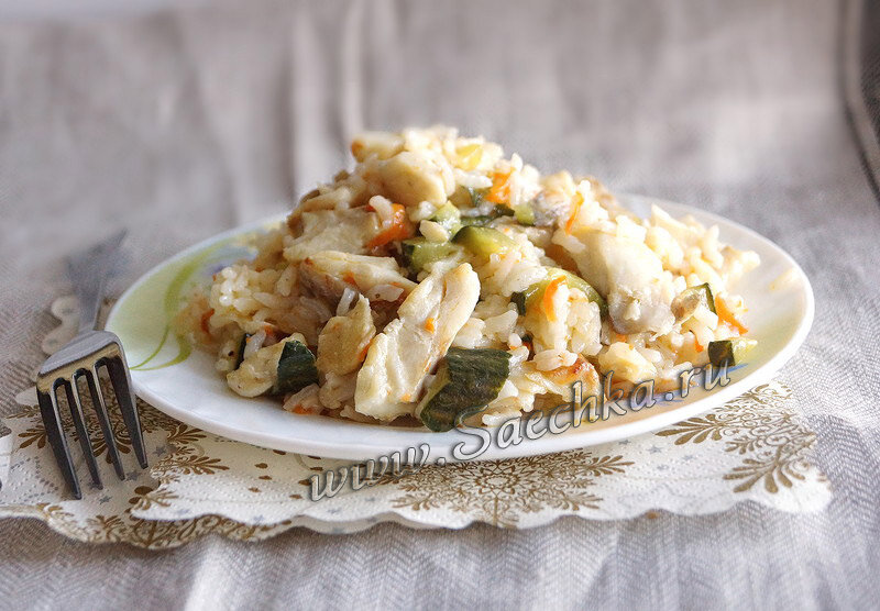 Ризотто приготовлено с рыбой и огурцами - необычное сочетание риса и трески. Вкусно, сытно, отлично подойдет на ужин.