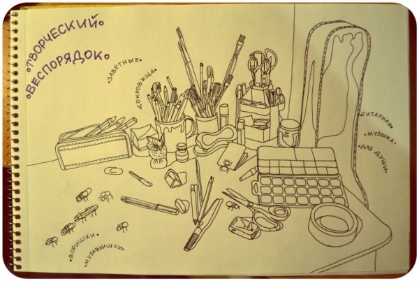 В общем и целом мне кажется, что мыслительные и творческие способности вообще не определяются порядком. Чтобы что-то сотворить, надо вообще отвлечься от мыслей о порядке и думать над совершенно другими вопросами. А это значит, что пространство должно быть удобным для человека настолько, чтобы его не отвлекать. Кого-то будут раздражать разбросанные на рабочем столе бумаги, и пока он их не приберет, он не придумает логотип для заказчика. А кто-то будет чувствовать себя неуютно в идеально прибранном пространстве, в котором нужно, как в том анекдоте, открыть шкафчик, вытащить из шкафчика коробочку, открыть коробочку, вытащить из коробочки пенальчик, открыть пенальчик, вытащить из пенальчика ручку – и только тогда уже начать записывать пришедшую в голову идею.