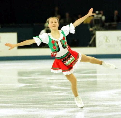 Вот такой была масяська Слуцкая, когда в сезоне 94-95 катала произвольную программу под чардаш. Ей здесь 14-15 лет и её платьице очень ей подходит.