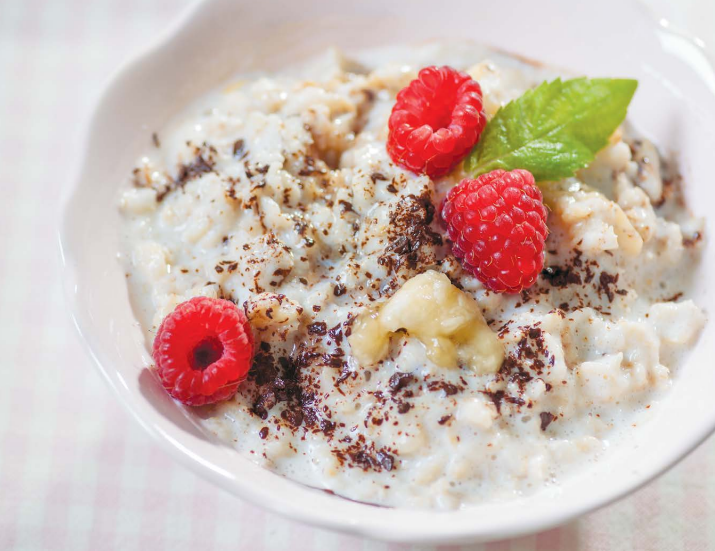 Далее кашку накладываем в тарелочки, добавляем банан и тертый шоколад и махом перемешиваем.