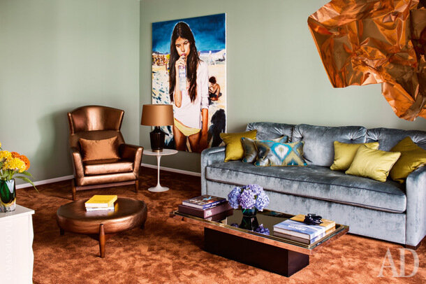 Апартаменты на Потсдамер-плац клиент Александра Штутца купил из-за удобного местоположения. Он очень занятой человек, а в центре всегда все под рукой — кафе, рестораны, кинотеатры и тренажерный зал, который расположен в этом же доме. Хозяин — русский дантист, ему уже доводилось работать с немецким дизайнером (Штутц оформил ему офис), поэтому в этот раз заказчик сформулировал свои пожелания совсем кратко. Он хотел воспроизвести в интерьере цветовую гамму питерского Зимнего дворца, используя морские оттенки. “Я сразу понял, что проект будет строиться на ощущениях. Мы много раз встречались, разговаривали о природе и путешествиях, а вот о мебели не говорили совсем”, — вспоминает Александр. Тем не менее он принял непростой вызов. Гостиная База для воплощения пожеланий хозяина была удачной: абсолютно белое пространство квартиры в новостройке, поделенное на зоны. Здесь уже были выделены гостиная, столовая с кухней, прихожая, спальня с ванной комнатой и гостевой санузел. “Для покраски стен я