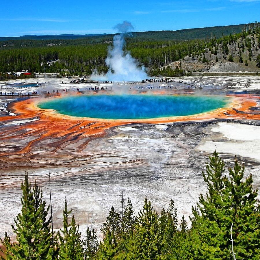 Заповедник Yellow Stone (Желтый камень) Самым большим национальным парком США считается заповедник «Желтый камень». Он находится в северно-западной части штата Вайоминг. Здесь насчитывается приблизительно 200 гейзеров, которые ошеломляют туристов буйством красок, ущельями и выпускающиеся облака пара, поднимающиеся из серных источников.