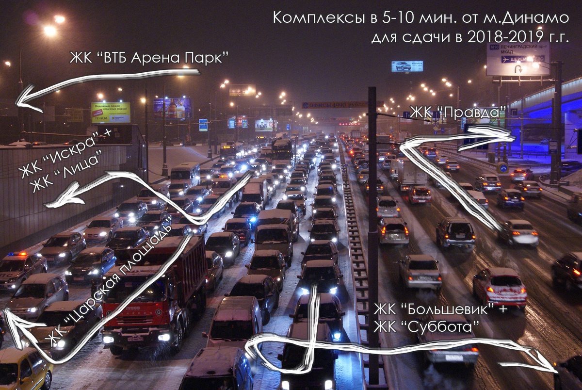 Автор фото ниже, скорее всего, был больше увлечен количеством машин на Третьем кольце и не задумывался, сколько кругом новых жилых комплексов. Ну ничего, я оставил пометки. Может, через пару лет он сможет повторить фото - только пробка уже будет двух- или трехэтажная.