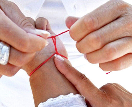 Красная нить на запястье левой руки может уберечь не только от сглаза, но и от болезни, а ещё принести удачу и счастье её обладателю. Так же рекомендуется повязать такую нить новорожденному ребенку, чтобы проблем с его здоровьем было гораздо меньше. Для того, чтобы такой оберег сработал нужно придерживаться нескольких правил. Во-первых нить должна быть шерстяной. Во-вторых завязать её должен родственник, который любит вас. Желательно, чтобы человек, повязывающий красную нить мысленно желал вам и любовь, и богатство, и здоровье. В-третьих завязывать нить нужно на левом запястье, на семь узелков. Ну и нить должна быть куплена за деньги. Шерсть природный ресурс, поэтому и действует проводником. Левая сторона считается стороной чёрта, поэтому и защищаемся с левой стороны. (Все мы помним, что в случае чего надо переплюнуть три раза через левое плечо). Семь чудес света и семь чувств, поэтому семь узелков. Ну а по-настоящему любящий родственник всегда желает только хорошее. Самому себе повяз