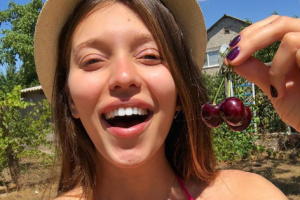 Телеведущая и певица Регина Тодоренко наслаждается дачным отдыхом. В своем Instagram она выложила фото, где запечатлена в купальнике и с черешней.