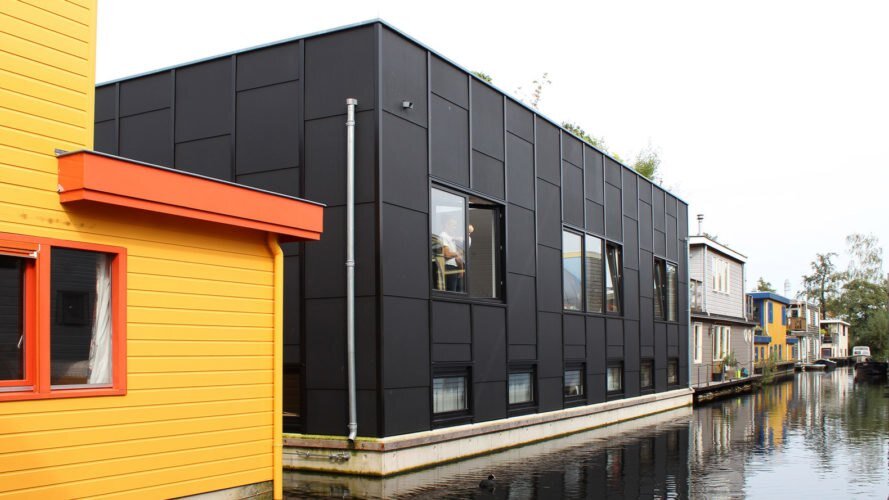 Если прогуливаясь по Амстердаму вы замечаете плавучий дом с дизайном, который не соответствует окружающей архитектуре, вы, вероятно, нашли тот самый плавучий дом с интерьером, вдохновленным японским дизайном. Архитектор Джулиус Таминяу вдохновился татами-комнатами на создание дома для себя и своей семьи, и он представил различные возможности экономии пространства, чтобы сделать его удобным и практичным. Плавучий дом был построен в городе Харденберг, на расстоянии в 100 километров от Амстердама. «Я искал место, где мы могли бы построить семейный дом с относительно небольшим бюджетом», - сказал Таминяу. «Это было очень сложно, так как цены на жилье в Амстердаме растут очень резко, поэтому этот плавучий дом идеально подходил». Таминяу использовал сетку татами для стандартизации конструкции и сокращения количества отходов. Внешняя облицовка также похожа на татами-маты и имеет отделку, которая позволяет ей незаметно отражать воду. Дом имеет два уровня, нижний - частично под водой. На