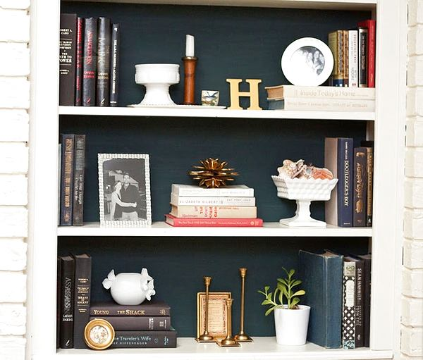 Преобразить свой интерьер можно даже благодаря такой небольшой детали как книжные полки. Причём не обязательно покупать новые, просто обновите старые, используя для этого народные хитрости, а какие именно — расскажем в нашей статье Для того чтобы быстро и без проблем вдохнуть в ваши книжные полки новую жизнь, понадобится малость терпения, чуточку усердия и немного теории. Конечно, можно выдумать множество способов, как изменить их внешний вид, но сегодня мы познакомимся с самыми популярными, а главное — доступными из них. 1. Декорируем заднюю стенку Ярко, стильно и оригинально будет выглядеть изменение задней стенки книжных полок. Для этого их можно покрасить в ваш любимый цвет или оклеить обоями в тон интерьера. Чтобы не использовать монотонное окрашивание, всегда можно создать рисунок или орнамент. А украсив стенку старыми семейными фото, прикрепив их на двусторонний скотч, вы создадите тёплую домашнюю атмосферу, и чтобы вспомнить о приятных моментах с родными и близкими, не придёт