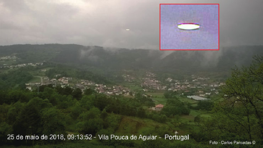 Посмотрите на эту интересную фотографию дискообразного НЛО, который был перенесен на Vila Pouca de Aguiar в Португалии 25 мая 2018 года.