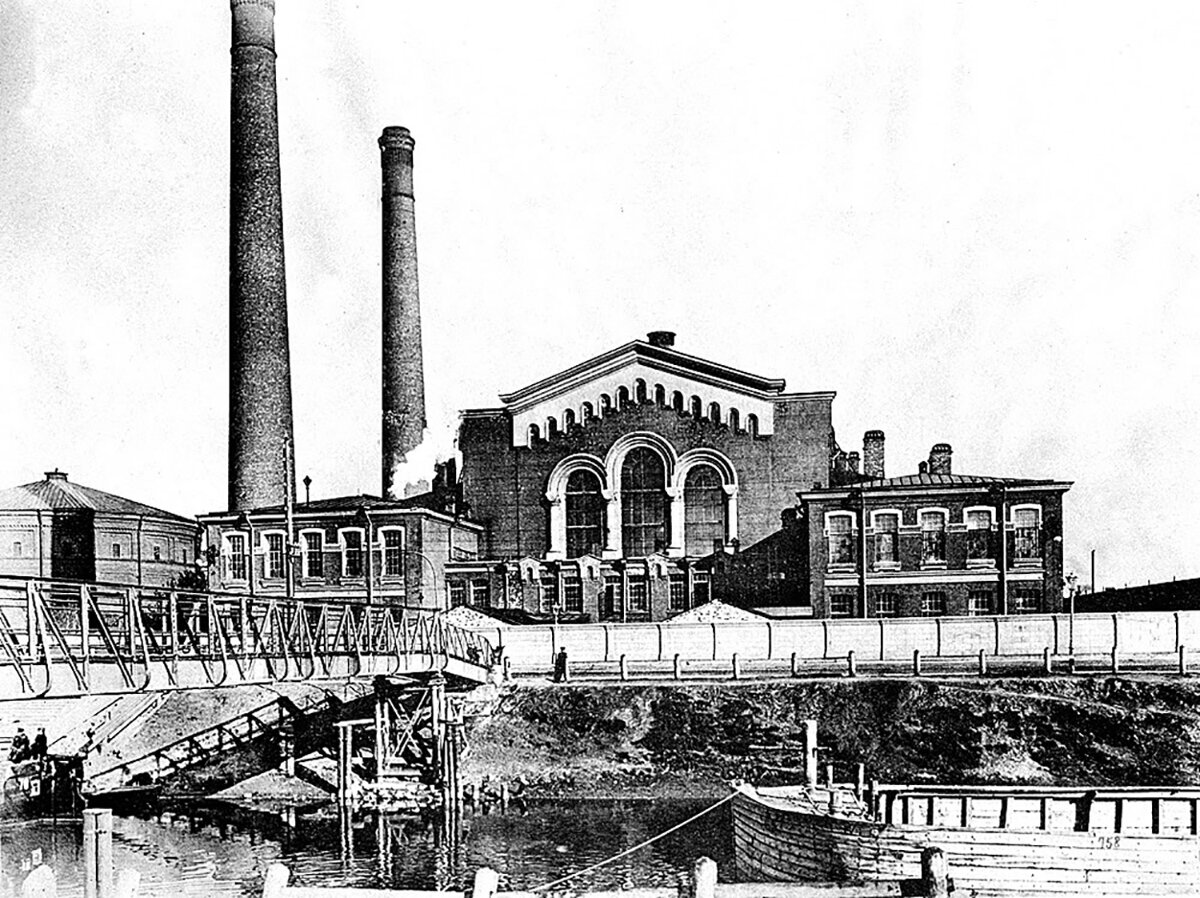 Электростанция «Общества электрического освещения 1886 года» на набережной Обводного канала заработала в ноябре 1898 года. На момент пуска станция была самой мощной - на ней были установлены четыре паровых котла и шесть паровых машин фирмы «Сименс и Гальске» общей мощностью 4200 кВт.