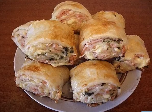 Нарезать на кусочки, смазать яйцом и в духовку выпекать.