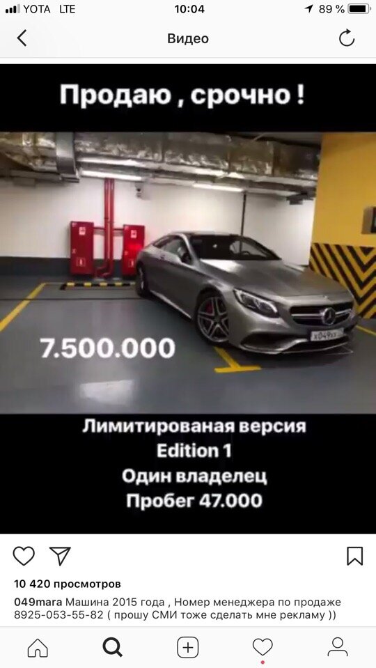 В российской столице последние годы на слуху имя Мары Багдасарян – скандально известной уличной гонщицы, которая была пожизненно лишена водительского удостоверения после полицейской погони за её автомобилем Mercedes G-Class. Несмотря на то, что по итогам погони за «геликом» в центре Москвы хулиганку Багдасарян лишили прав, она продолжает водить автомобиль. Причём не один, а сразу несколько – у дочери богатого отца имеется целый автопарк из люксовых авто. С одним из «коней» гонщица Мара решила расстаться, о чем уведомила общественность в своём инстаграм-аккаунте. Привыкшая к вниманию прессы Мара Багдасарян прямым текстом просит СМИ сделать рекламу её объявления. Мы пойдем немного дальше, и даже проверим её автомобиль одним из популярных сервисов. Несмотря на лишение прав, Мара Багдасарян была и остаётся активным водителем – всего за три года её автомобиль наездил более 50 тысяч километров. При этом не стоит забывать, что данный Mercedes-Benz – не единственная машина стритрейсерши. Много